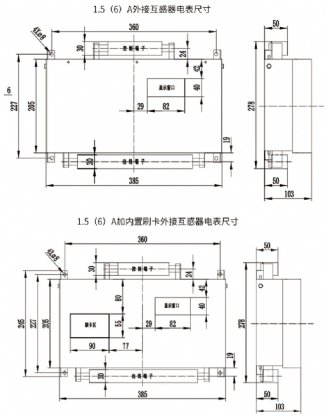 ◆ XY-85型和XY-80型工業(yè)用互感器大電流遠(yuǎn)控、遠(yuǎn)抄及刷卡多用戶(hù)電能表尺寸(單位:mm)。